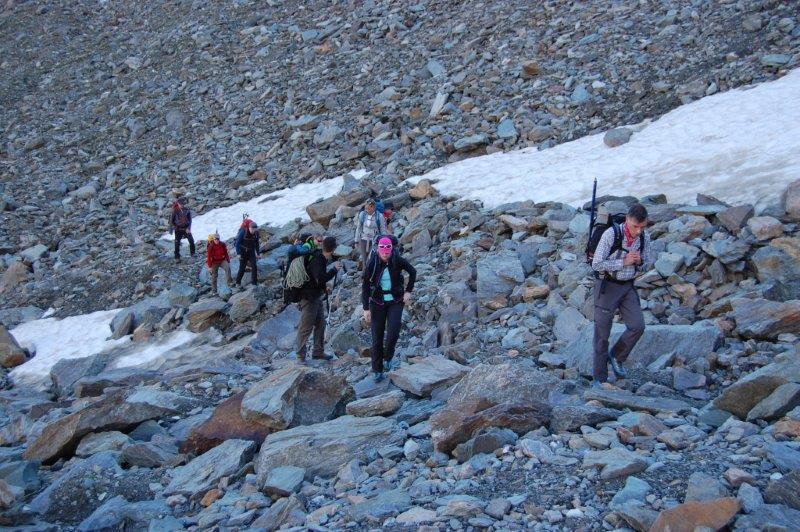 Dann der geplante Gipfeltag: die Berge sind komplett wolkenverhangen, die Suppe geht teilweise bis zur Hütte. Kein guter Tag um über einen unbekannten Gletscher aufzusteigen. Schweren Herzens treten wir unverrichteter Dinge den Rückzug an, dafür werden wir auf der Schaubachhütte wieder kulinarisch verwöhnt, bevor wir am nächsten Tag die Heimreise antreten.