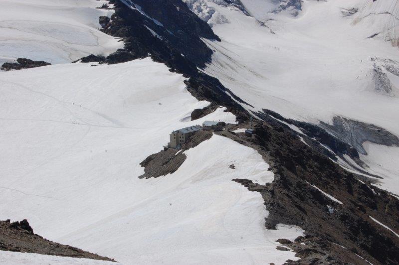 Von der Suldenspitze steigen wir zum Rifugio Casati ab, das auf respektablen 3254m liegt. Dass man auf einer so hoch gelegenen Hütte Abstriche in der Qualität und Zugeständnisse am Preis machen muss, war mir klar. Etwas erstaunt war ich, dass gerade mal 100m hinter der Sprachgrenze nur noch italienisch gesprochen wird und das Ambiente auch sonst, mit Stehklos und Espressomaschine, komplett italienisch ist.