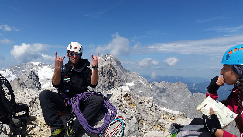 nach der Auffahrt mit der altehrwürdigen Zahnradbahn auf´s Zugspitzplatt bestiegen wir als Nachmittagstour noch kurz den Schneefernerkopf, immerhin der zweithöchste Berg Deutschlands. Kaum zu fassen, warum sich hier kaum je ein Bergsteiger hin verirrt, eine wunderschöne kleine Tour mit Gletscherchen und alpiner Steiganlage.