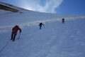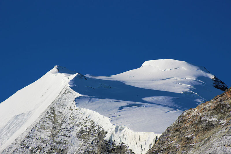 Am nächsten Morgen war das Frühstück für 3 Uhr geplant. Allerdings machte uns das Hüttenteam einen kleinen aber wesentlichen Strich durch die Planung. Frühstück um 5 Uhr hieß es. Nicht früher! Schade, so wird die Tour noch eine regelrechte Plaisiertour! Aber was wir nicht ändern können müssen wir wohl so hinnehmen. Also Frühstück um 5 Uhr, Abmarsch um 6 Uhr! So ging es pünktlich um 6 Uhr in Richtung Gässi, einem Schuttcouloir, das teilweise mit Seilen versichert, schnell und sicher überwunden werden konnte. Einige Zeit später erreichten wir den Turtmanngletscher und richteten uns für die Gletscherbegehung. Die Schneeoberfläche des Gletschers war weitestgehend geschlossen und nur wenige Spalten begleiteten uns. Spaltenstürze blieben ganz aus. Nachdem wir den flachen Gletscherteil hinter uns gelassen hatten steilte unser Anstieg auf teilweise bis zu ca. 35-40 Grad auf. Anstrengend ging es bergan. Die letzten 150 Höhenmeter erledigten wir im Schutt, ohne Eis und Schnee unter den Steigeisen. Glücklich erreichten wir den Gipfel und konnten dank des guten Wetters eine herrliche Rundumsicht auf Monte Rosa, Dom, Täschhorn und Matterhorn genießen. Über uns thronte das gewaltige Weißhorn mit seinem beeindruckenden Nordgrat. Der Abstieg gestaltete sich in den steilen Eispassagen spannend aber unkritisch. Am Abend hatten sich alle ihr Abendessen mehr als verdient und die Hüttenruhe um 22 Uhr einzuhalten war für keinen der Gruppe ein Problem.