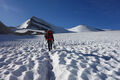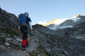 Um es Vorweg zu nehmen, den Viertausender sind wir uns schuldig geblieben. Das Wetter hatte mit uns anderes vor. Aber von Anfang an. Morgens früh um sechs war Treffpunkt an der "Blauen Lagune" in Bondorf. Mit von der Partie waren sieben Alpinisten. Ziel war für den ersten Tag die Turtmannhütte im Schweizer Wallis. Die Anfahrt via Autoverlad gestaltete sich glücklicherweise staufrei und so konnten wir bereits früher als geplant den schönen Hüttenaufstieg angehen. Vorbei am Stausee und über den „Steinmännlesweg“ hatten wir schnell die nötigen Höhenmeter überwunden und konnten uns am verdienten Hüttenbier laben. Zwischen Hüttenbier und Abendessen gab es noch eine Lehreinheit Spaltenbergung zur Auffrischung für alle.