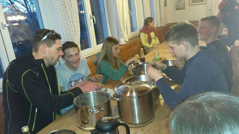 Nachdem die Routen der Halle bezwungen und die letzten Einweisungen für den Fels im sicheren Hallenumfeld stattgefunden haben setzte die Klettergruppe die Fahrt ins Donautal fort und bezog zum Abend die Schlafräume im Ebinger Haus. Nach einem herzlichen Empfang der engagierten Mitglieder der DAV Sektion Ebingen, setzte sich ein Teil der Gruppe in die Küche ab und bereitete das Abendessen vor. Nachdem die hungrigen Mäuler gestopft und der Abend mit gemütlichem Zusammensitzen und Kartenspielen ausgeklungen ist, begab sich einer nach dem anderen ins Bett, um für den kommenden Klettertag am Fels gut erholt zu sein.