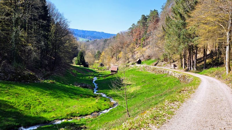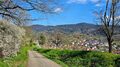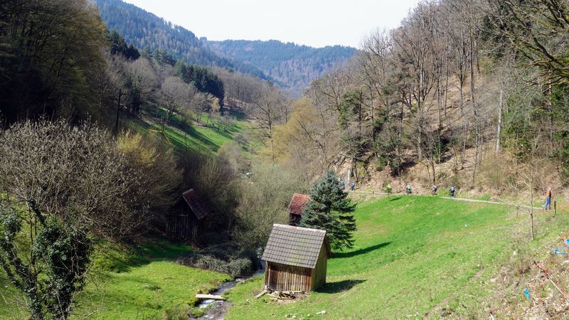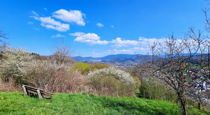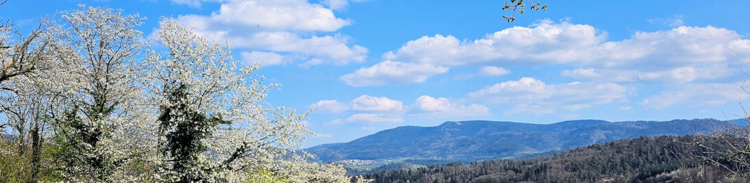 Nach dem Murgtal führte das schöne Hahnbachtal hinaus nach und durch Staufenberg. Vom Vesperplatz über den Weinbergen des Großberg konnte die herrliche Aussicht auf die Bergkette zwischen Hohloh und Bernstein genossen werden.