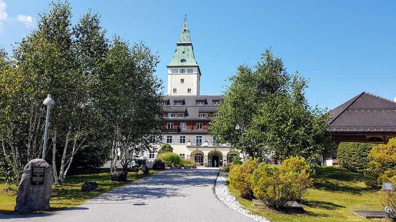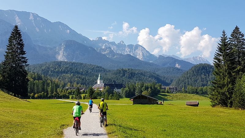 Die Radgruppe angeführt von Roland fuhr über Schloß Kranzbach und das Schloßhotel Elmau (G7 Gipfel 2015)