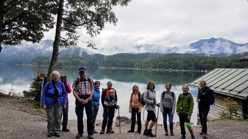 Ein Teil der Wanderer fuhr mit der Zugspitzbahn zum See und traf dort mit der zweiten Gruppe zusammen, die bereits die ersten 6 Kilometer vom Haus aus zurückgelegt hatten. Gemeinsam wurde der Eibsee umrundet.