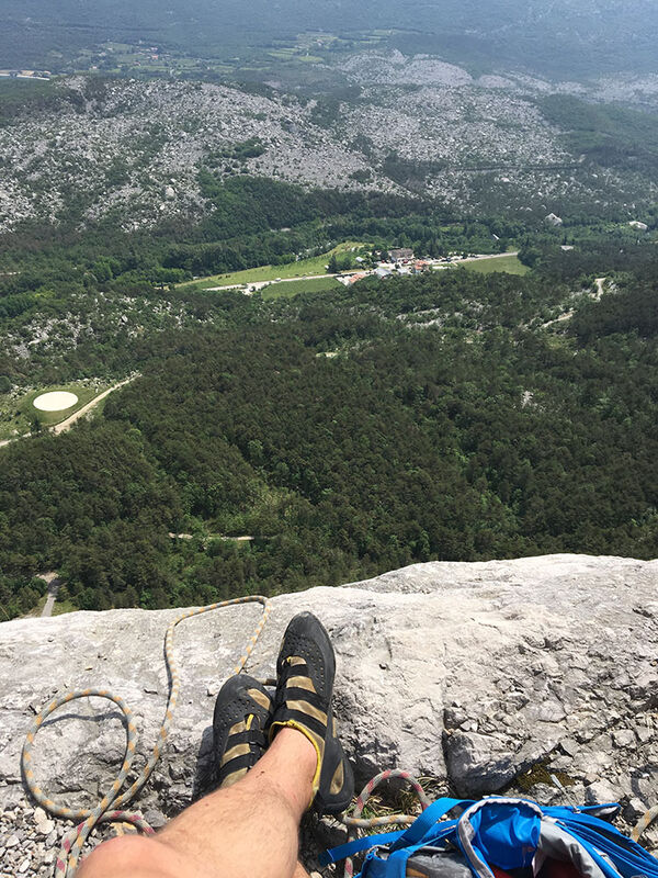 Der nächste Morgen begann mit einem relativ langen Frühstück bei dem noch die Touren für den Tag besprochen wurden. Der Monte Colt mit den Wänden der Parete di San Paolo standen für die 2 Seilschaften am Frühstückstisch auf dem Plan – wie auch am nächsten Tag. Der war allerdings schon etwas von Muskelkater geprägt! J Der anschließende Abend sollte relativ früh enden, da es am Donnerstag relativ früh in die Sonnenplatten alias Parete Zebrata ging. Früh in die Schlafsäche schafften wir es nicht, aber relativ früh aus den Schlaf Kajüten sind wird dennoch gekommen! Kurz nach 9 waren die ersten Kletterzüge getan und die Kletterlust auf die 400m lange Wand geweckt. Die Aussicht war wie immer der Wahnsinn!