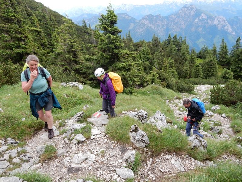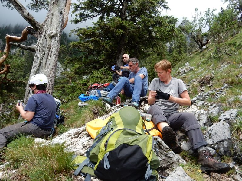 Leider hat es am Sonntagmorgen wieder geregnet, so dass wir den Gipfel ausließen und der Abstieg über den Mair Alm Steig, welches laut Hüttenwirt der einfachste sei, doch recht beschwerlich war. Wir haben ihn jedoch gut gemeistert und auch das Wetter wurde wieder schön und warm, so dass es sich einige von uns nicht nehmen ließen, im Traunsee ein kurzes Bad zu nehmen. Auch heute hatten wir wieder Glück, als wir bei den Autos ankamen, begann es zu regnen! Nach kurzer Abschlusseinkehr im Cafe in Gmunden trennten sich unsere Wege, Susanna und Jürgen fuhren noch weiter nach Ramsau und wir wieder heim.