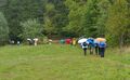 In Buhlbach am Häusle der Langlaufloipe wurde gevespert, die Regenfront holte uns jedoch ein, sodass wir mit Benutzung der Regenschirme weiter durch`s Tal nach Obertal, Mitteltal und zum Abschluss in die Mühlbachstube nach Baiersbronn liefen. Zwischendurch wurde mir Münsteranerin noch die besten Worte der schwäbischen Mundart beigebracht (inkl. Aussprache derer).