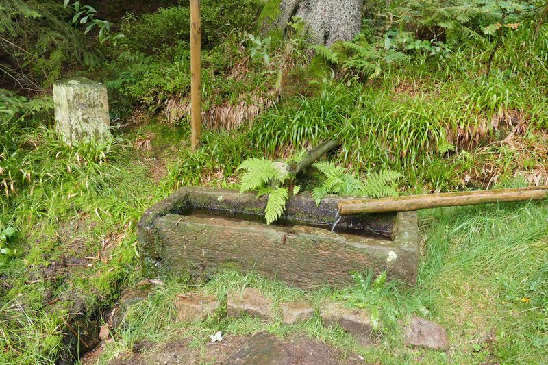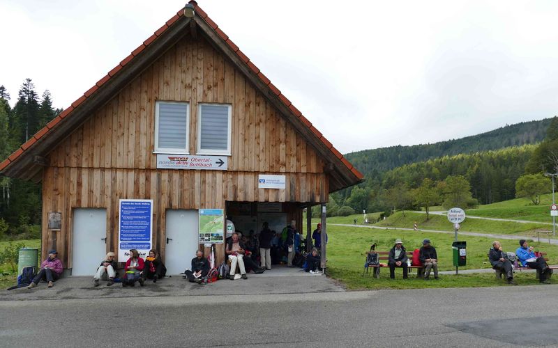 In Hochdorf traf sich die Wandergruppe und fuhr mit der Bahn nach Freudenstadt, wo wir umstiegen und ein netter unterhaltsamer Busfahrer uns zum Schliffkopf fuhr. Mystisch, neblig und kalt war es (deshalb leider keine Aussicht möglich), sodass wir uns direkt in den dunklen Wald begaben, wo es auf schmalem Pfad steil bergab ging. Talwärts am Murgursprung vorbei erwarteten uns immer wieder sonnige Abschnitte.
