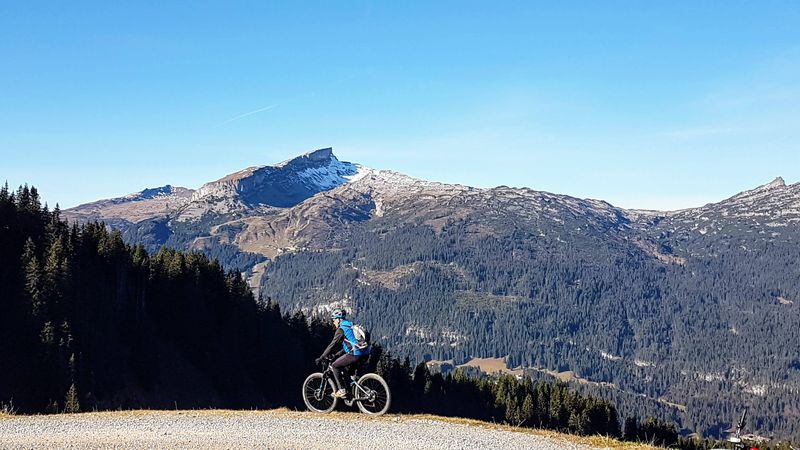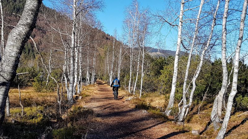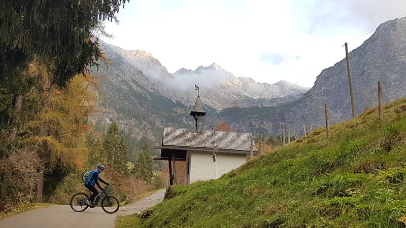 Am letzten Tag ging es von Stillachtal über die Schlappoltalpe 1.000 Höhenmeter hinauf zur Kanzelwand. Auf dem Wanderweg wo es im Sommer wie auf der Stuttgarter Königstrasse zugeht war kein einziger Fußgänger unterwegs. Am Fellhorn und Kanzelwand waren die vielen Schneekanonen schon in Stellung gebracht, wohl in der Hoffnung dass die Skisaison ohne Corona-Lockdown profitabel starten konnte. Die lange Abfahrt hinunter ins Kleinwalsertal kostete einiges an Bremsbelag. Am Mahdtalhaus konnte in der warmen Sonne eine Vesperpause eingelegt werden. Nach 45 km mit 1.600 Höhenmeter war bald wieder Oberstdorf erreicht.