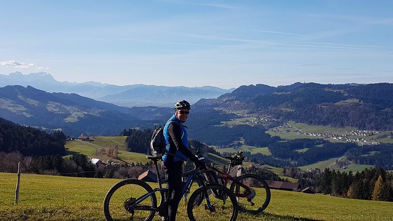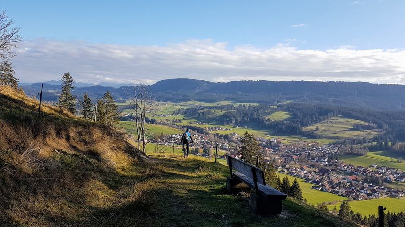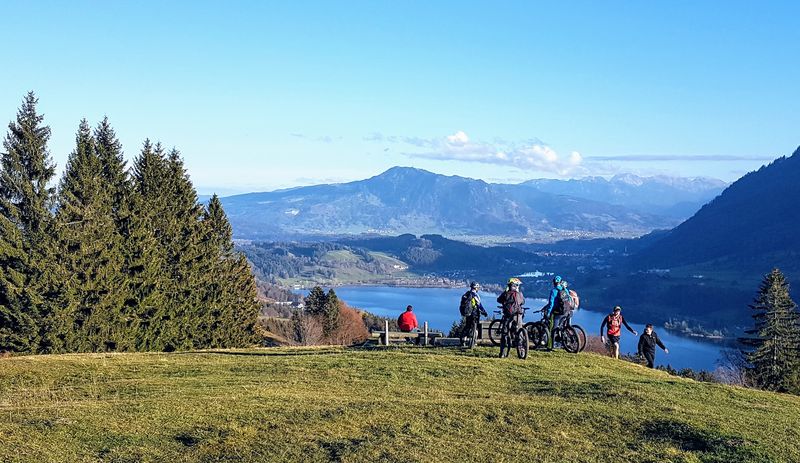 Eine etwas entspanntere Tour gab es am nächsten Tag mit nur 60 km und 1.600 Höhenmeter. Vom Großen Alpsee ging über das hügelige Alpenvorland hinüber ins Weitnauertal und über den Sonneneck-Grat nach Weitnau. Der Carl-Hirnbein-Weg führte über Missen-Wilhams und den Alpseeblick wieder zurück.