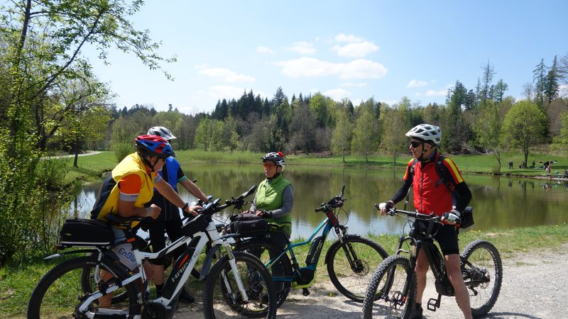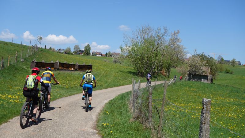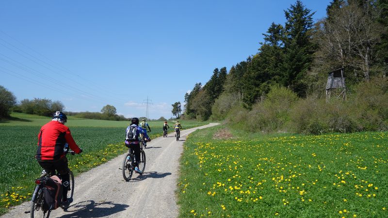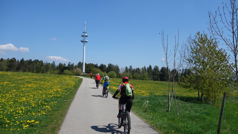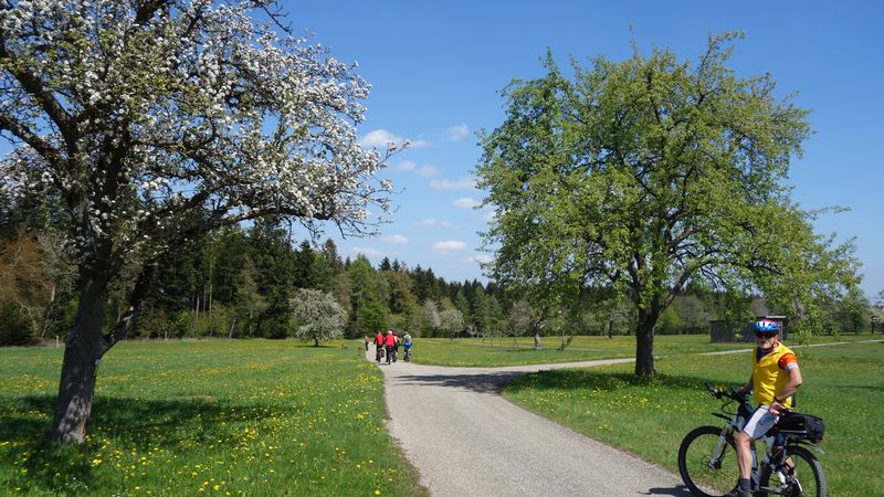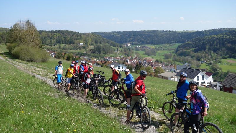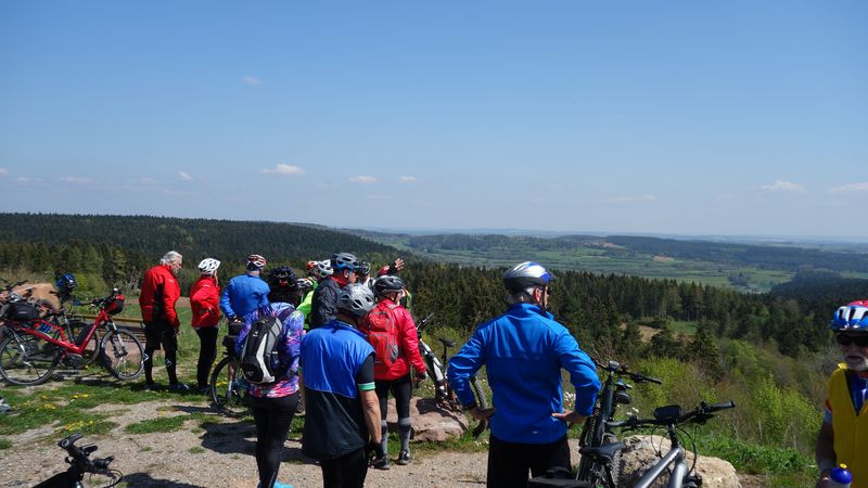 24 Teilnehmer starteten beim Sportplatz in Güntringen. Über die abwechslungsreiche Hochfläche des Haiterbacher Heckengäus führte die Tour hinüber nach Salzstetten. Nach der dortigen Fernsicht gab es den nächsten Aussichts-Halt auf der Erddeponie zwischen Tumlingen und Grünmettstetten. Der Gäurandweg leitete zum nächsten Aussichtspunkt, wo auf dem Rödelsberg bei Schopfloch eine Vesper-Pause eingelegt wurde. Entlang des Gäubahnlinie ging es aussichtsreich weiter auf die Königskanzel über Dornstetten. Nach Herzogsweiler und Pfalzgrafenweiler folgte das nächste Highlight am Bömbachsee bei Spielberg. Nach verschiedenen Wegen über den Egenhauser Kapf hatte sich Gruppe dann wieder zusammengefunden. Ein schöner Naturweg führte hinüber nach Walddorf und durch den dortigen noch blühenden Streuobstpfad. Vom Panoramaweg über Oberschwandorf ging es durch das Fuchsloch hinunter ins Waldachtal. Die letzte Auffahrt musste ein Teilnehmer teilweise zu Fuß bewältigen weil sein Rad-Akku leer war. Nach 62 km mit 1060 Höhenmeter Auffahrten war der Start- und Zielpunkt wieder erreicht.