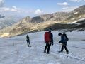Der Wecker klingelt am nächsten Morgen um 5:15 Uhr - man kratzt sich die Müdigkeit aus den Augen und sucht das Frühstück auf - um 6 Uhr geht es dann mit Tourenrucksack los in Richtung Alpeiner Ferner. Vorbei an Wasserfällen und über alte Gletschermoränen und Blockgelände geht es auf den Gletscher. Immer wieder ziehen Wolken durch das Tal und hüllen die Täler und Berge in sattes weiß - Grund genug für Matthias Seeger der Gruppe etwas über die Orientierung bei dieser Wetterlage zu erklären. Über den Gletscher spurt die Gruppe durch den Neuschnee der letzten Tage wieder die Route zur hinteren Hölltalscharte - dort ging es auf den mit Schnee bezuckerten Grat und durch Firnfelder im Gipfelanstieg zur Ruderhofspitze (3474m) - der Himmel belohnt die Bergsteiger mit etwas Sonne und blauen Löchern in der Wolkendecke. Pünktlich zur Mittagszeit kann die Truppe ihr Vesper am Gipfel verspeisen und macht sich dann wieder auf den mit Gletscherkunde kombinierten Rückweg zur Hütte. Das Tal ist lang... nach 22 km und 1300 hm haben sich die Füße an der Hütte Frischluft und die Tourenteilnehmer ein kühles Getränk auf der Hütte verdient!