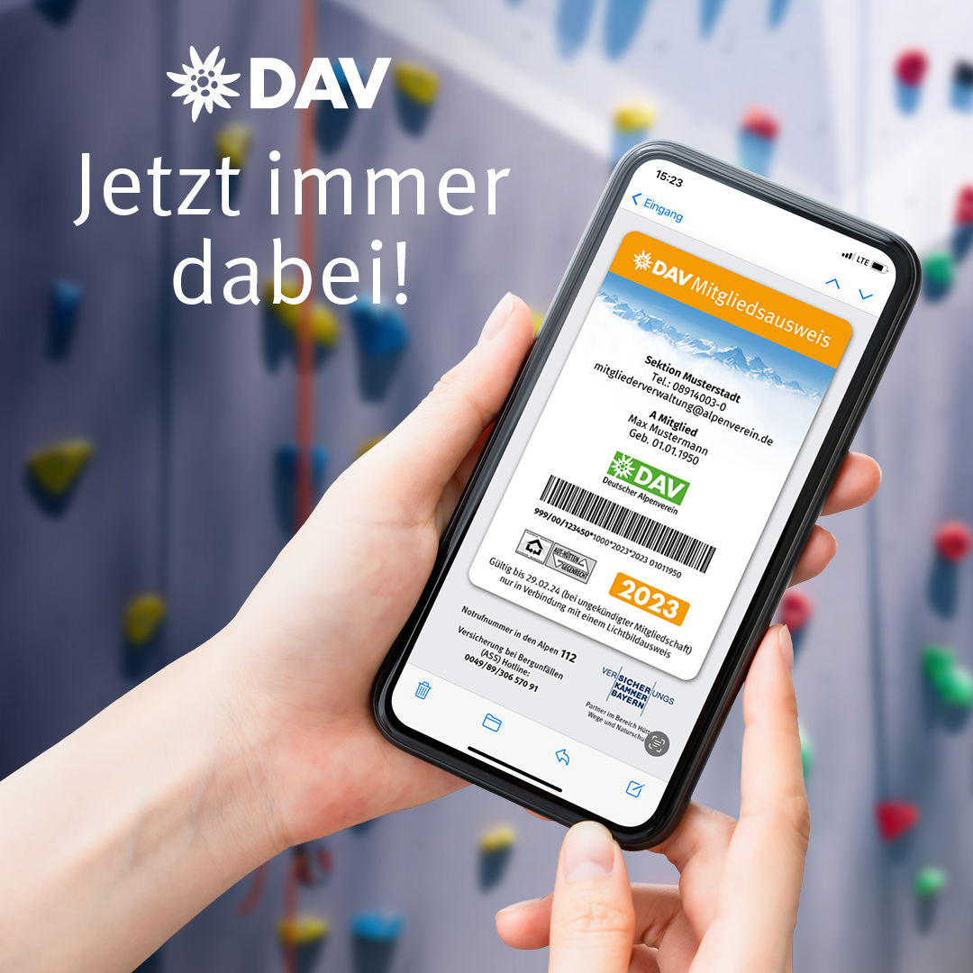 - analog dem gedruckten Ausweis mit Barcode für Lesbarkeit auf Hütten und in Kletterhallen.