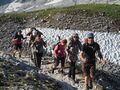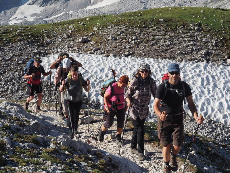 Gegen Mittag wurde die Knorrhütte endlich erreicht. Nach dem anschließendem Mittagessen wurde noch eine Wanderung zum Ehrwald-Gatterl, einer ehemaligen Zollstation, unternommen. In der rustikalen Knorrhütte wurde im Matratzenlager übernachtet. Am nächsten Morgen konnte die längste und schwerste Etappe der Wanderung in Angriff genommen werden. Die Durchquerung der Schnee- und Geröllfelder zum Sonnalpin verliefen reibungslos, so dass das letzte und steilste Stück, die Drahtseil gesicherten Felshänge unterhalb des Münchner Hauses erklommen werden konnten.