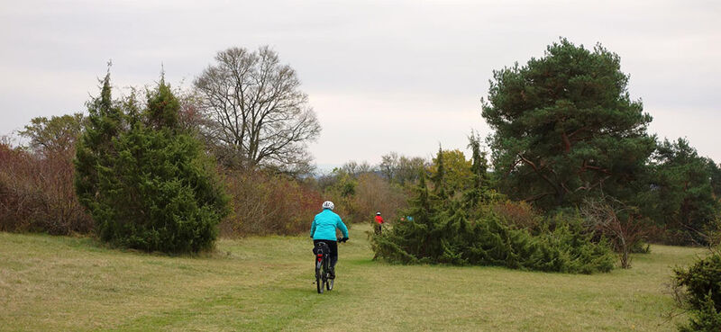 Wieder ohne Regen aber bei frischen 10°C ging es durch die typische offene Heckengäulandschaft, vorbei an Streuobstwiesen, Wacholderheiden und herbstbunten Hecken.