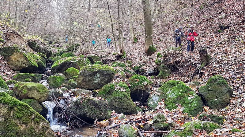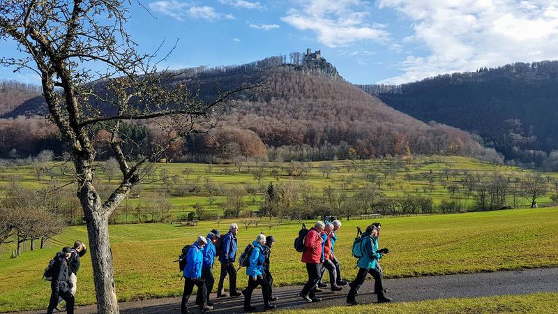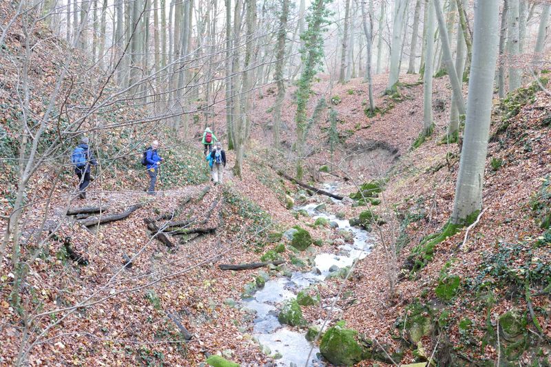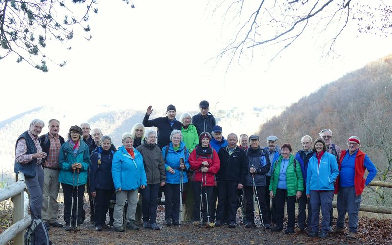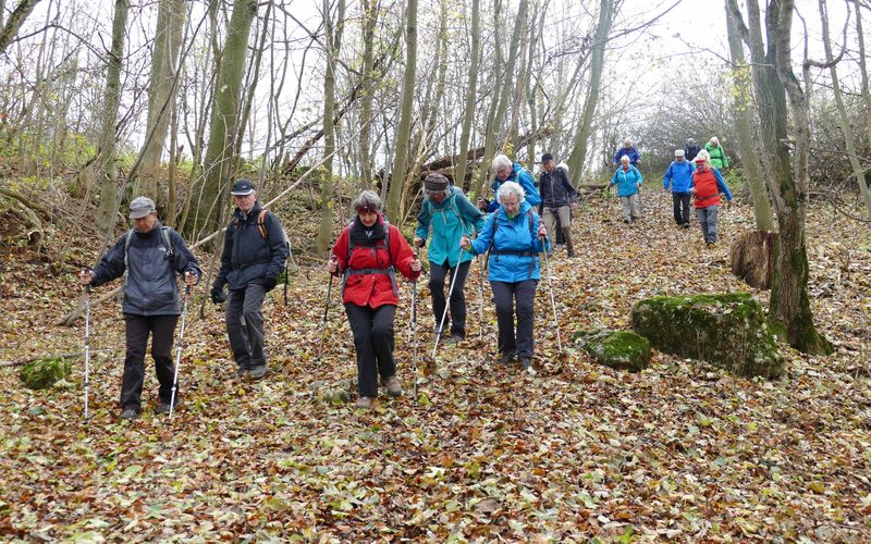 Gegen 12.20 begann bei schönem Herbstwetter unsere Wanderung. Zunächst auf asphaltiertem Weg, dann steiler aufwärts auf dem etwas rutschigen Hans Schumann-Weg zum Aussichtspunkt an der Hindenburghütte. Dann auf bequemen Wegen mit schöner Aussicht zur Ziegelhütte im Randecker Maar, bevor der Abstieg durchs wildromantische Zipfelbachtal nach Hepisau wieder Stockeinsatz und volle Aufmerksamkeit forderte. Nach dem Gang durch den schönen Ort war es nur noch ein kurzes Stück zur Schlusseinkehr im sehr empfehlenswerten Lamm in Neidlingen um 15.45. Um 17.30 fuhren wir zufrieden mit Bussen und Bahn heim.