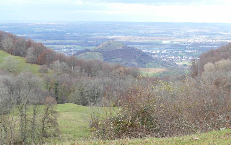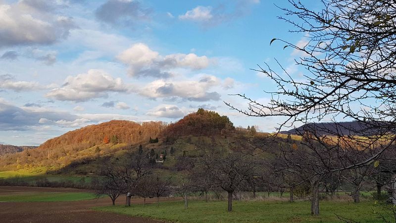 Regen. 7.45 mit dem Bus nach Herrenberg, 8.16 S1 nach Kirchheim/Teck, Ankunft planmäßig 9.38. Mehr Regen. Schnell zum Bussteig 2, von dem laut Plan um 9.46 der Bus 177 zum nächsten Umsteigeort Weilheim abfahren sollte. Doch der Fahrer behauptete, er fahre nach Lenningen und nicht nach Weilheim. Ein anderer Bus war nicht da, er fuhr fort und wir standen im Regen. In Sehne´s Cafe nutzten wir die sanitären Anlagen, tranken Kaffee und bekamen Informationen über Personalausweis-Verlust auf Teneriffa. Eine Stunde später nahmen wir den nächsten Bus, stiegen in Weilheim um und erreichten um 11.24 unser Ziel Neidlingen. Kein Regen mehr, teils Sonne.