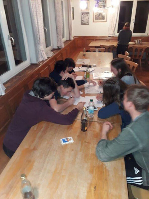 Samstag und Sonntag schliefen wir aus und nach der Halle entwarfen wir in Arbeitsgruppen unser Logo, spielten Karten oder Brettspiele!