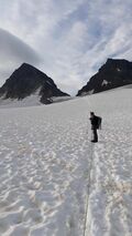 Die Temperaturverhältnisse der letzten Zeit zwangen zum frühen Aufstieg, so hatte die 10 köpfige Truppe schon gegen 11.30 die 400 hm hinter sich und konnten nach einer Pause noch Ihre Gletscherkenntnisse in einer kleinen Erkundungstour auffrischen bzw. ergänzen.