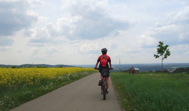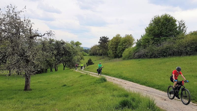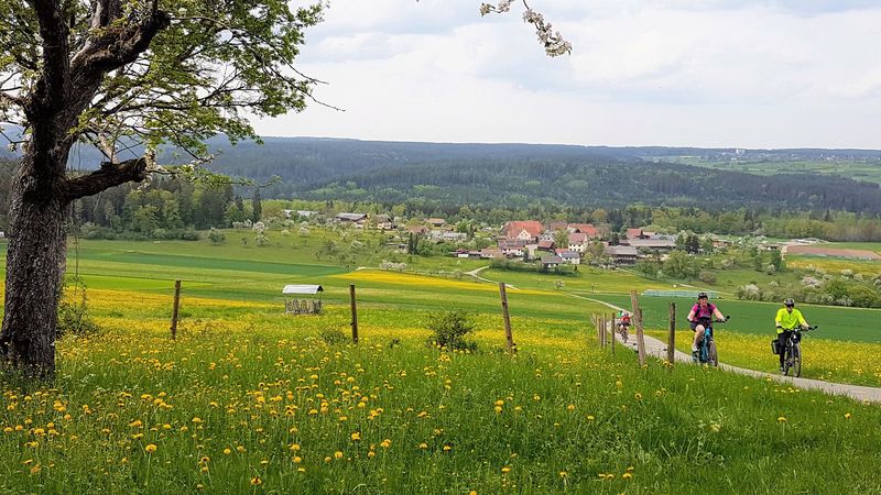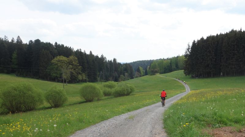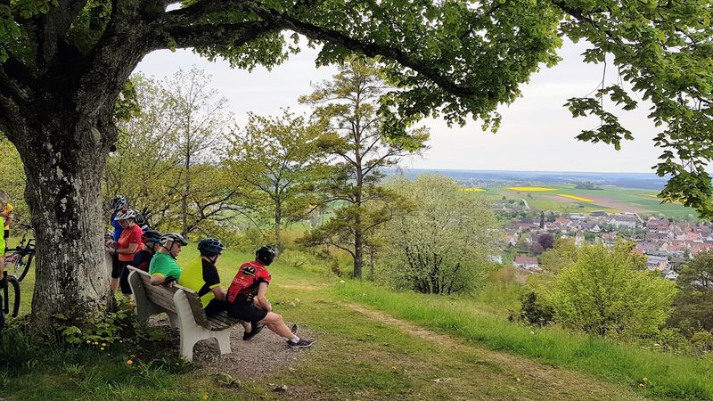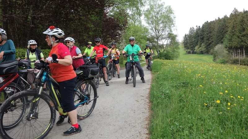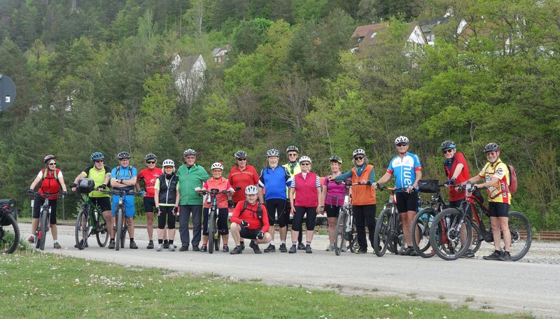 17 Radler genossen unsere Heimat vor ihrer schönsten Seite. Roland Kling führte die Gruppe am 10. Mai 2022 über der Höhenorte links und rechts des Oberen Nagoldtals.