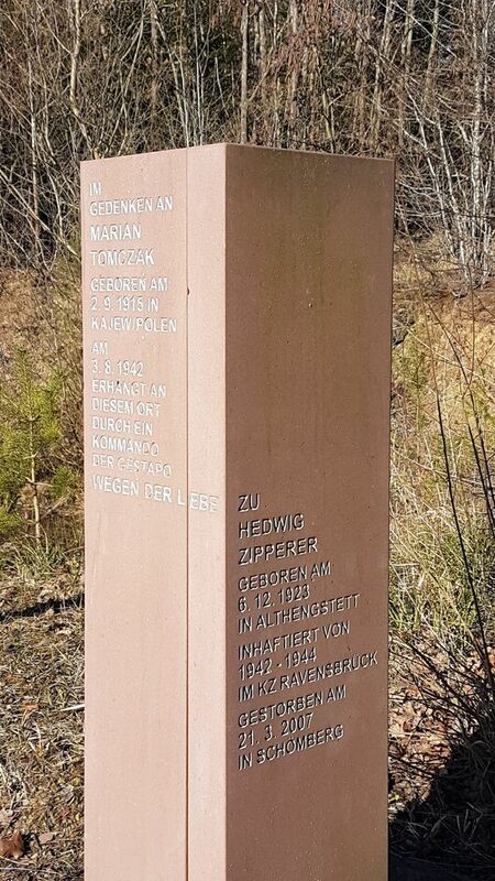 Einen kleinen Info-Halt gab es in Althengstett an dem Gedenkstein für Marian Tomczak und Hedwig Zipperer.