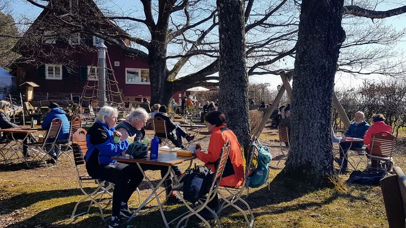 Eine Vesperpause wurde in dem sonnigen Biergarten des Wanderheims eingelegt. Bei der rasanten Abfahrt ins Nagoldtal hinunter wurde es noch einmal frischer.
