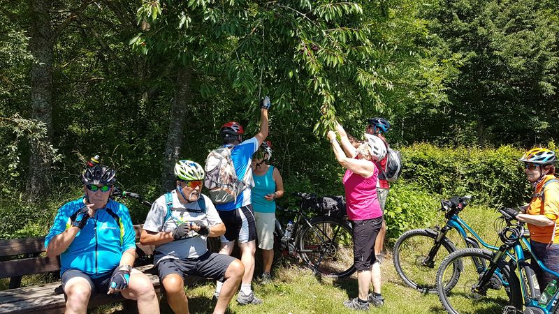 Über Gültlingen und den Wächtersberg ging es immer dem aussichtsreichen Gäurandweg entlang. Vom Kühlenberg hatte man einen schönen Aussicht hinüber zur Hornisgrinde. Nach dem Kehrau-Wald und Mötzingen wurde Baisingen angesteuert. Eine längere Pause mit süßen wilden Kirschen gab es beim dortigen Jüdischen Friedhof. Nach Vollmaringen und Güntringen ging es ohne Anstrengung das Steinachtal hinunter nach Nagold. Nach einer ausgiebigen Kaffeepause rollte man auf dem Nagoldtal-Radweg hinunter nach Wildberg. Auf dem angenehmen Radweg ging es über Gültlingen wieder hinauf nach Holzbronn wo nach 60 km und 700 Höhenmeter das Ziel erreicht war.