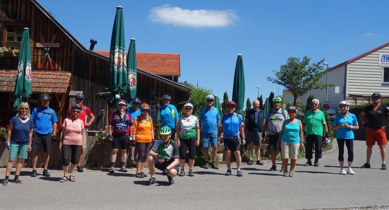 Bei schönstem Wetter trafen sich 18 Radler in Calw-Holzbronn. Schon bei der Aufstellung zum Starter-Gruppenbild achtete der Touren-Guide Roland Kling darauf, dass die geltenden Corona-Abstände eingehalten wurden. Und auf der Fahrt war dies ohnehin fahrtechnisch erforderlich.