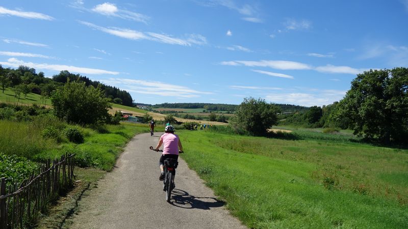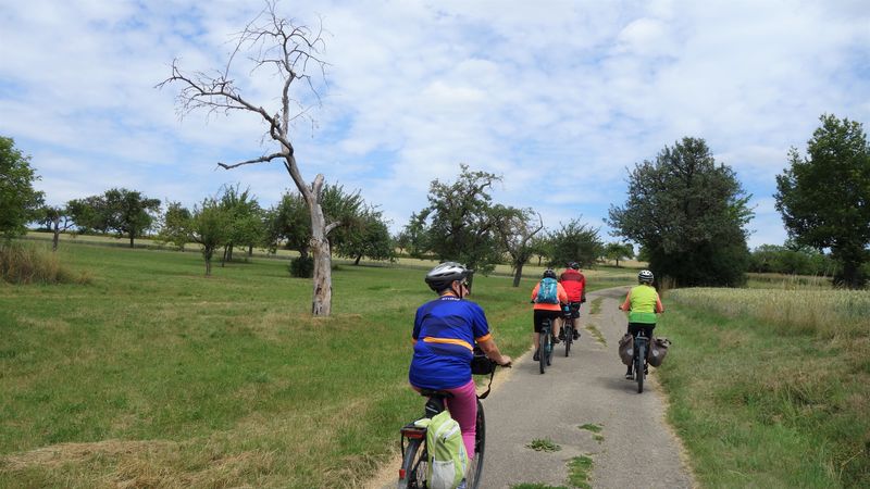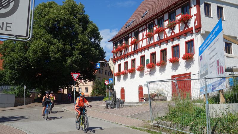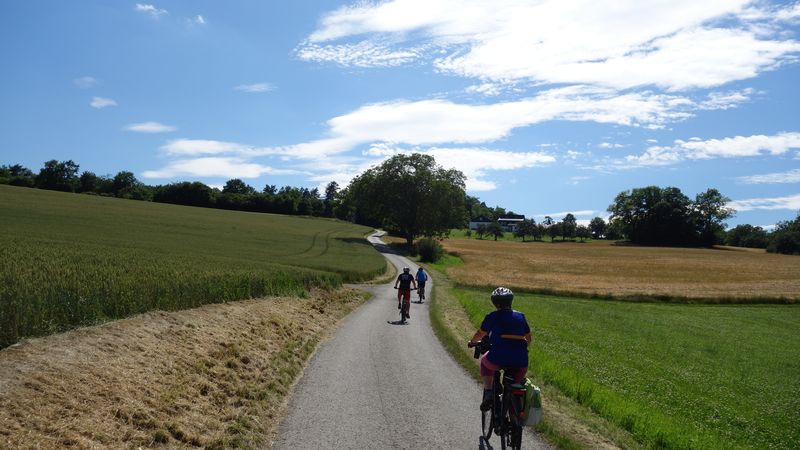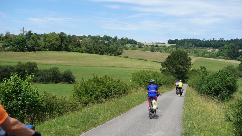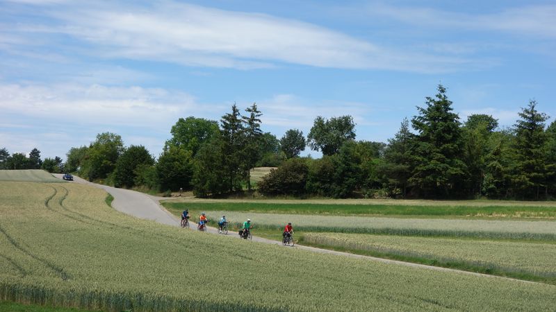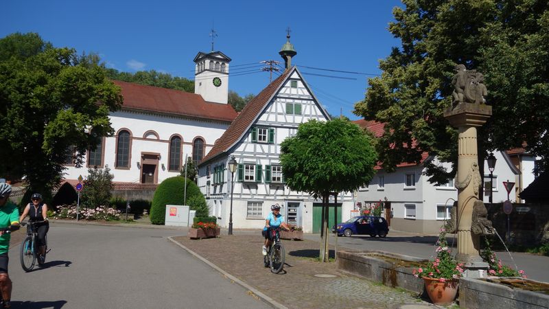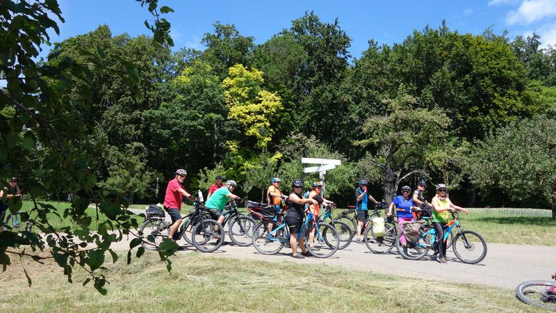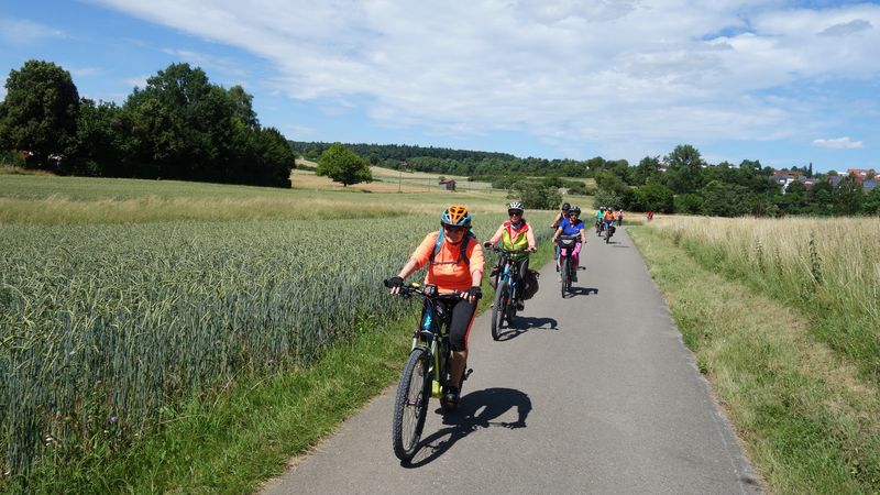14 Donnerstags-Radler trafen sich in Althengstett. Vom Heimberg aus ging es zuerst durch Simmozheim und dann hinüber zum Büchelberg. Nach der Abfahrt ins Würmtal radelte die Gruppe durch die offene Gäu-Landschaft hinüber nach Friolzheim. Nach der Unterquerung der A8 erfolgte eine schöne Abfahrt das Grenzbachtal hinunter nach Mönsheim. Vorbei am Schloss Obermönsheim und dem schön angelegten Golfplatz ging es abwechslungsreich weiter hinüber zum Porsche-Entwicklungszentrum in Weissach. Weit reichte der Blick das mittlere Neckartal hinunter bis hinüber zum Schwäbischen Wald. In Flacht ging es die schöne Linden-Alle hinauf auf den Ettlesberg und hinüber zur Kaffeepause im Freizeitpark Rutesheim. Nach Weil der Stadt und Grafenau folgte ab Ostelsheim die letzte Steigung wieder hinauf nach Althengstett. Nach 60 km und fast 1.000 Höhenmeter Auffahrten war wieder der Ausgangspunkt erreicht.