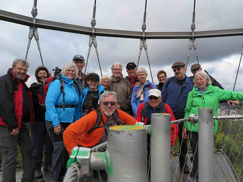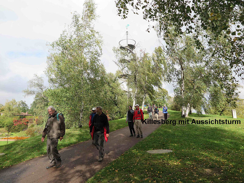 Wie üblich fuhren wir mit Bus ab Nagold und / oder S1 nach Bad Cannstatt. Am Wasen vorbei überquerten wir den Neckar und gelangten in den Travertinpark in Münster. Richtung Müllheizkraftwerk sahen wir die 14 Travertinsäulen, die 1936 für ein Mussolini-Denkmal bestellt und wegen des Geschichtsverlaufs nicht mehr ausgeliefert werden konnten. Weiter ging´s zum ersten „Hohen Punkt“, dem Burgholzhof-Turm. Ein kleiner Regenschauer, aber die Schützengesellschaft Tell hatte einen Imbissstand mit kleinem Zelt aufgebaut. So konnten wir wettergeschützt bei einem Weißwurstfrühstück auf die Sonne warten. Der nächste „Hohe Punkt“ war der 42m hohe Killesbergturm mit seiner filigranen Stahlnetzkonstruktion. Von 42m Höhe hatten wir eine tolle Aussicht Richtung Cannstatt mit den Riesenrädern auf dem Wasen. Am Ausweichquartier der Eidechsen von Stuttgart 21 vorbei gelangten wir zur dritten Aussichtsplattform, dem Bismarkturm. Von dort an ging´s bergab, und nach 15 Kilometern erreichen wir den Brauereigasthof Dinkelacker zur verdienten Schlusseinkehr.