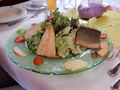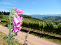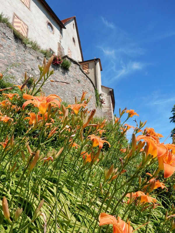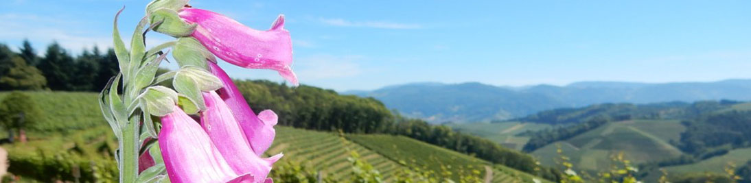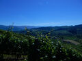 Danach geht es weiter leicht bergauf im angenehmen Schatten des Waldes, bis wir vom “Münsterblick“ einen schönen Ausblick ins Rheintal und natürlich auf das “Straßburger Münster“ auf uns einwirken ließen. Nach der dortigen Schutzhütte ging es weiter durch herrliche Weinberge bis zum “Fichtenbuckel“ und “Rohrenbacher Eck“. An einer kleinen Hütte hatte uns Ursula auf einen kleinen Umtrunk eingeladen. Danach überschritten wir den “Hochrank“ und gelangten zum “Schwarzen Kreuz“. Weiter ging es am “Stollenwald“ vorbei und über das “Ilental“ zum “Schloß Staufenberg“, welches wir nach ca. 4,5 km erreichten. Hier haben wir eine halbe Stunde Rast eingelegt. Mann konnte auf der schönen Terrasse etwas essen und auch den passenden Wein dazu verkosten. Oder in der “Chocolaterie“ ganz einfach passend zur Hitze ein leckeres Eis genießen. Hier waren doch sehr außergewöhnliche, aber leckere Sorten im Angebot. Auch von hier gab es einen tollen Ausblick auf die Weinberge und die Rheinebene.