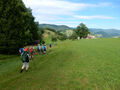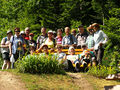 Um 12:00 Uhr ging es weiter leicht ansteigend bis zur “Brandstetter Kapelle“. In der Folge vorbei an der “Stürzelbacher Höhe“ und “Hummelswald“. Danach ging es steiler weiter bis zur “Bildeiche“, hier zeigte sich der Ausblick auf Oberkirch, sowie das mittlere Renchtal bis zum Schliffkopf. Im Schatten der Bildeichschutzhütte haben wir unsere ersehnte Brotzeit gemacht und die Reserven neu aufgeladen. Über den “Schönwasen“ und die “Krebsenbacher Höhe“ gelangten wir zum “Ofenloch“, hier konnten wir uns am Brunnen etwas erfrischen. Ab hier ging es schon mehr zur Sache, der steile Aufstieg zum Mosskopf. Vorbei am “Michelsbrunnen“ ging es weiter konstant steil bergauf, immer unterbrochen von schönen Sichtweisen ins Rheintal. Über den “Steinweg“ mussten wir nochmals kurz die letzten Kräfte mobilisieren, um den Mooskopf mit seinem gleichnamigen Turm zu erklimmen. Hier haben wir auch den höchsten Punkt unserer Tour mit 871 m ü.N.N nach ca.15 km erreicht. Die meisten ließen es sich nicht nehmen um auch noch die Aussichtsplattform über die enge Wendeltreppe zu besteigen. Von hier oben schweifte der Blick über den Nord- und Südschwarzwald, sowie die Schwäbische Alb, Kinzigtal und den Vogesen. Nach einer halben Stunde Trinkpause im Schatten des Turmes ging es von hier fast nur noch 8 km bergab. Über das “Moosturmwegle“ und die “Edelmannskopfhalde“, sowie den “Sandbühl“ runter bis zum Höhenhotel “Kalikutt“. Hier haben sich ein paar Wanderer die viel gepriesene “Schwarzwälder Kirschtorte“ zu Gemüte geführt, welche aber zwischenzeitlich auch mehr als verdient war. Anschließend weiter bis zur Abzweigung am “Börsgritt“, wo es weiter ging Richtung “Lehwaldsbrunnen“. Über eine kleine Holzbrücke querten wir das “Kuhbächle“ und weiter leicht ansteigend vorbei am “Lehwaldweiher“. Nochmals eine etwas größere Steigung nach “Guckinsdorf“ und weiter zum Schlußabstieg hinunter zu den “Hugenhöfe“. Planmäßig sind wir um 18:00 Uhr im Gasthof “Rebholz“ in Oppenau eingetroffen und haben hier unseren gemeinschaftlichen Tourenabschluss bei leckerem Essen genossen. Diese Tour wurde von Ursula Trunte mit viel Engagement geplant und mit viel Elan auch von ihr durchgeführt. Im nächsten Jahr steht die 2.Etappe des Renchtalsteiges von Oppenau nach Bad Peterstal an. Mit 16,5 km und 793 Höhenmeter vielleicht nicht ganz so anstrengend wie die erste. Obwohl heuer eher die schwühlheiße Witterung das vorrangige Problem war, als die (lange) wunderbare Strecke. Aber in Oppenau gibt es ja nicht nur Wein, sondern auch ein oder zwei Bierchen, um den großen Durst zu löschen ...