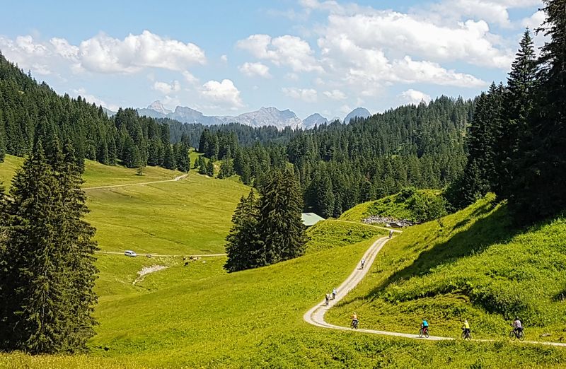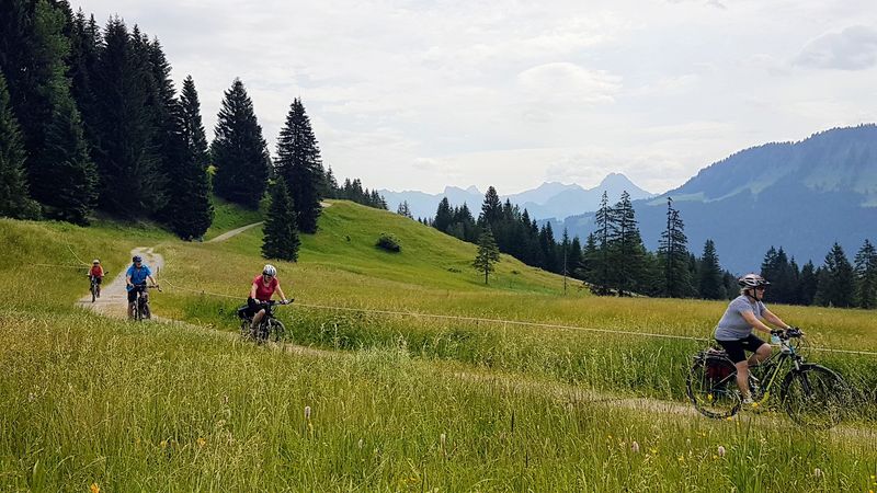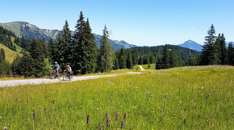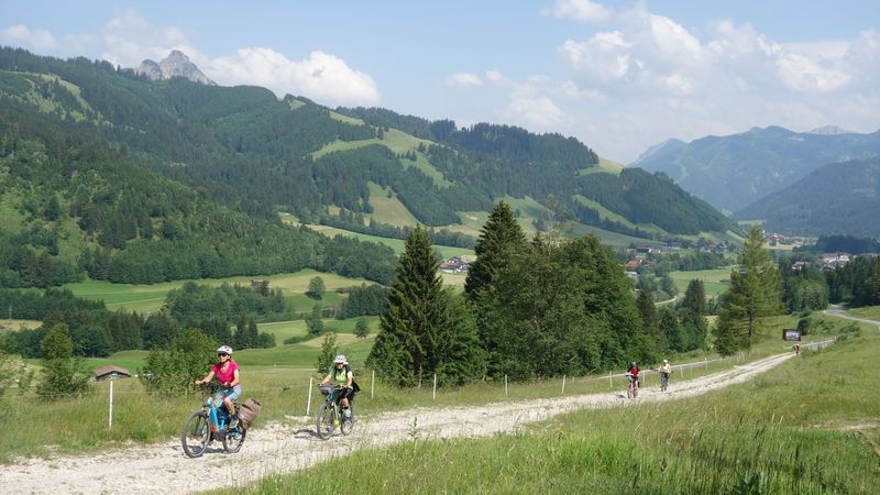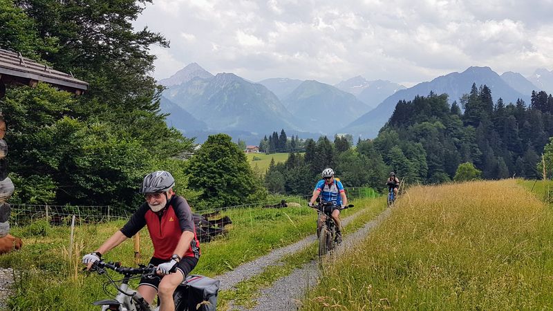 Roland Kling führte bei mehreren Tagestouren durch bunt blühenden Bergblumenwiesen ins Tannheimertal, ins Kleinwalsertal und vom Gunzesriedertal über Balderschwang durch das Lochbachtal nach Oberstdorf. Täglich galt es Etappen jeweils bis zu 60 km mit bis zu 1.200 Höhenmeter Auffahrten zu bewältigen.