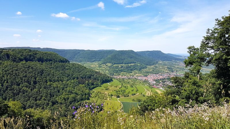 Vorbei am Randecker Maar ging es hinüber zur Ruine Reußenstein und hinunter zu der Kugelmühle in Neidlingen. In den schönen Streuobstwiesen des Neidlinger-Tales konnten auch die ersten reifen Kirschen dieses Jahres gesichtet werden.