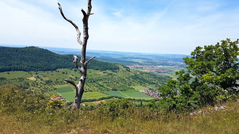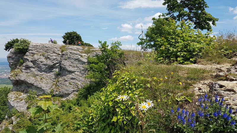 Roland Kling führte die Gruppe am 2. Juni 2022 von Gruibingen dem Albtrauf entlang über Schopfloch hinüber zum Breitenstein bei Ochsenwang. Immer wieder boten sich herrliche Panorama-Ausblicke über den Albtrauf und in das Albvorland.