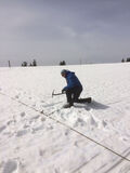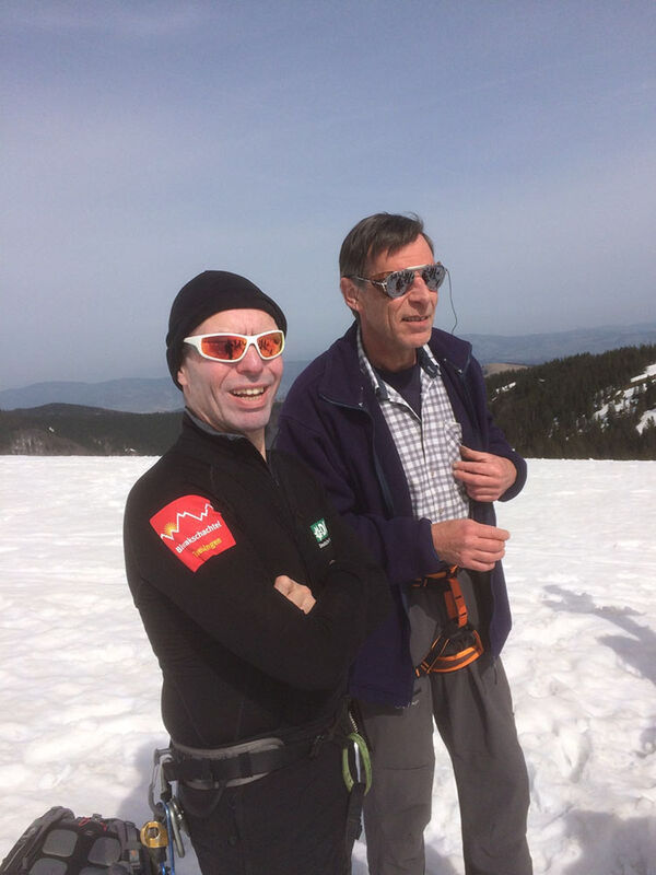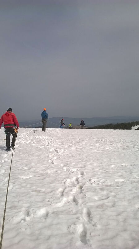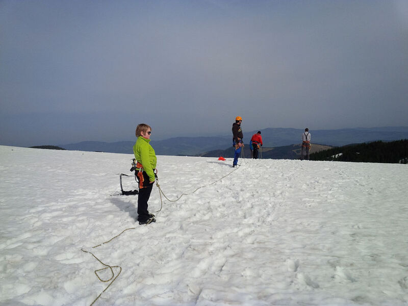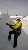 An der Gipfelwächte konnten die Teilnehmer, unter der Leitung von Stefan Katz, Patrick Guhse und Markus Kehle, die Geheimnisse der Spaltenbergung lernen und üben. Nach einer kleinen Materialkunde und einer Unterweisung im Anseilen am Gletscher wurden die Rettungstechniken "Mannschaftszug" und "Lose Rolle" gelehrt.