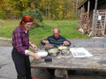 Für abends hatte uns Revierleiter „Superförster Rudi“ zum Grillen eingeladen. Dazu bereiteten wir Salat, schwäbischen Kartoffelsalat, Apfelstrudel und Vanillesoße. Beim gemeinsamen Essen mit Rudis Familie und den Forstwirten Fredl und Rudi erfuhren wir noch mehr von der Struktur der Bayrischen Forstverwaltung und den Arbeiten im Bergwald.