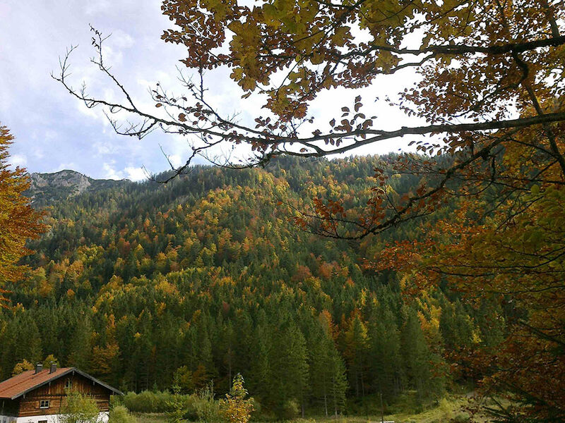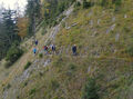 Morgens nach der Hüttenreinigung hatten wir mit Rudi und seiner Praktikantin Juliane eine Exkursion auf dem Ministersteig an der Nessler-Hütte, dem ehemaligen Jagdrevier der Familie (Gunter) Sachs. Rudi brachte uns die Problematik des Bergwaldes näher, den Spagat zwischen den Bedürfnissen der Ökologie, Ökonomie und der Jäger, die möglichst viel Wild in den Revieren haben wollen.
