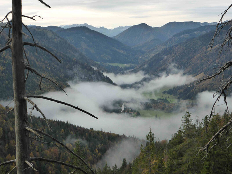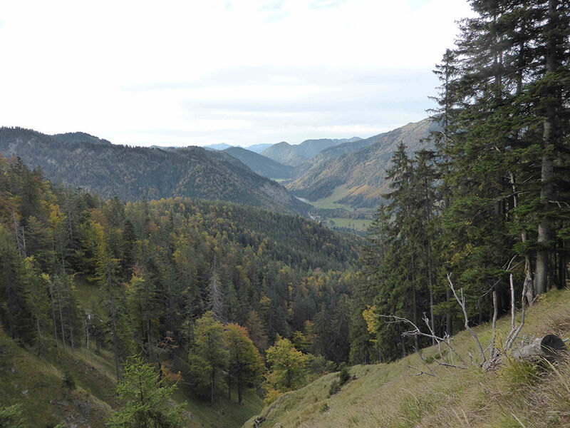 In dem Revier um den Wendelstein entstehen relativ viele Schäden durch Schneebruch wegen des Nassschnees in diesen tieferen Lagen. Ein weiteres Handicap ist das langsame Wachsen der Pflanzen im Bergwald. Rudi ließ uns das Alter eines Ahorn-Pflänzchens schätzen. Unsere Schätzung lag bei zwei bis drei Jahren, tatsächlich waren es fünfzehn.