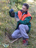 Wir anderen drei meldeten uns zum Aufstellen von Hochsitzen. Sie waren schon zusammengebaut, wurden vom Schlepper auf den Anhänger geladen und zu den Standplätzen gefahren. Wir fuhren mit den Waldarbeiten Rudi und Kai im VW-Pritschenwagen, der mit den benötigten Materialien beladen war: Motorsäge, Hacken, Hammer, Schlegel, Akkuschrauber, Nägel und Schrauben. Gefühlte 100 km ging es über Forstwege. Der erste Platz am Breitenstein war schwierig zu erreichen: Steil abwärts durch unwirtliches Gelände mit alten Baumstämmen und Felsen. Manchmal war ich froh, dass ich mich beim Tragen am Ansitz festhalten konnte, sonst wäre ich wahrscheinlich gestürzt. (Den fünf Mitträgern ging es ähnlich). Die anderen drei Jagdkanzeln wurden vom Schlepper an Ort und Stelle in Oberaudorf und Feilnbach gebracht, wir mussten sie nur noch ausrichten und befestigen. Keine angenehme Arbeit bei dem immer stärker werdenden Regen. Zurück in der Stocker-Hütte wieder Speisenzubereitung: Salat, Linsen mit Spätzle, Apfelstrudel, Vanille-Soße und Apfelmus.