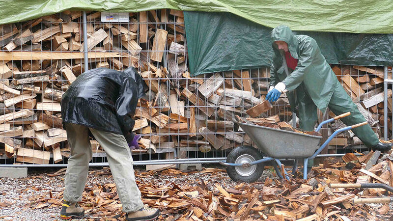 Sechs Teilnehmer meldeten sich zu den Restarbeiten beim Steigbau, die anderen räumten Brennholz an einer noblen Jagdhütte, ehemals im Besitz der Familie Sachs.