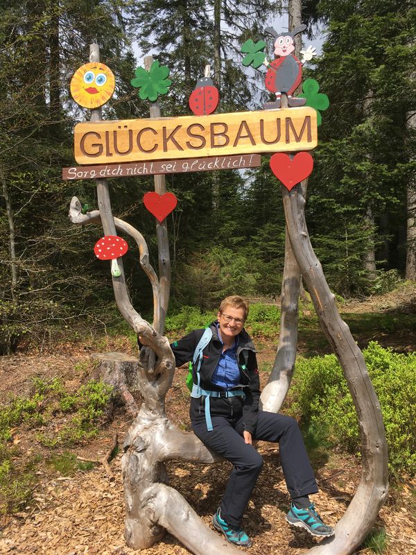 Bald wurde der höchste Punkt der Wanderung, das Dorf Kniebis erreicht. Hier zeigte sich die Sonne, so dass wir beim Glücksbaum ein perfektes Fotomotiv hatten.
