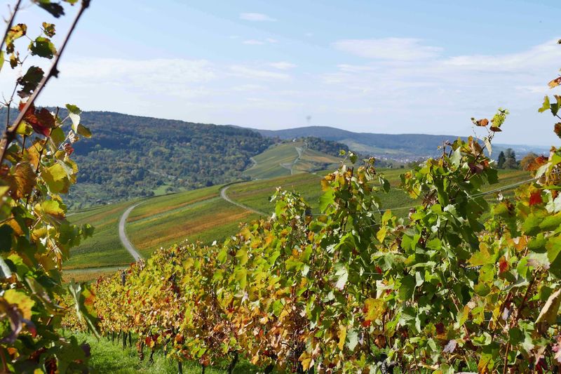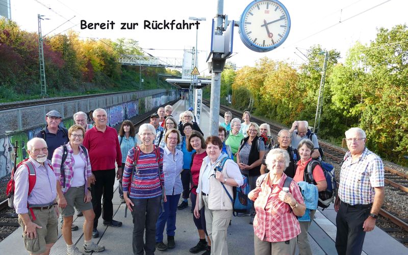 Fast pünktlich trafen die 31 Teilnehmer nach der Anfahrt mit Bus und Bahn kurz nach 10 in Winterbach ein, obwohl die Durchsage „Verspätungen wegen Personen in der Gleisanlage“ Schlimmeres befürchten ließ. Zunächst nutzten wir die Sanitär-Anlagen in der Stadtinformation und in einer Bäckerei, dann konnten wir erleichtert losgehen. Zunächst durch den Schurwald aufwärts gelangten wir zur Mittagspause zum Hartig-Denkmal auf dem Goldboden. Dort stärkten wir uns am Fuße des Kaiser-Wilhelm-Denkmals. Auf dem Kaisersträßle mit herrlichem Panoramablick gelangten wir durch Manolzweiler zum Aussichtspunkt „Drei Riesen". Immer wieder konnten wir die Süße und den unterschiedlichen Geschmack der restlichen Trauben an den Rebstöcken testen. Vom Aussichtspunkt – er wird wegen der Bestuhlung auch „Theater“ genannt – hatten wir eine schöne Übersicht über Beutelsbach, dem Ziel unserer Sonntagswanderung. Nun ging´s nur noch durch die herbstlich bunten Weinberge abwärts zur Schlusseinkehr in den empfehlenswerten „Löwen“. Gestärkt schafften wir auch noch die viertelstündige Gehzeit zum Beutelsbacher S-Bahnhof.