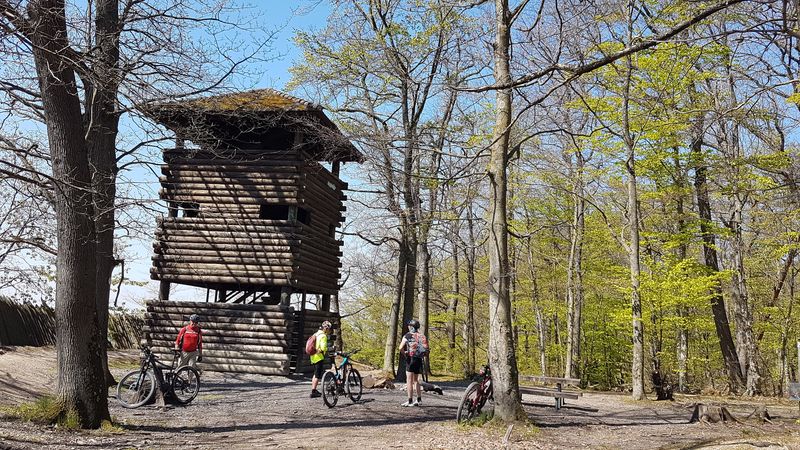 Der Zugang zum Aussichts-Pfad über Spielberg war leider für Räder etwas verbarrikadiert, aber nicht unüberwindbar. Nach Hohenhaslach ging es vorbei an dem schönen Brenzlesriedweiher nach Horrheim. Alle Kraft war gefordert bei der steilen Auffahrt hinauf auf den Eselsberg.