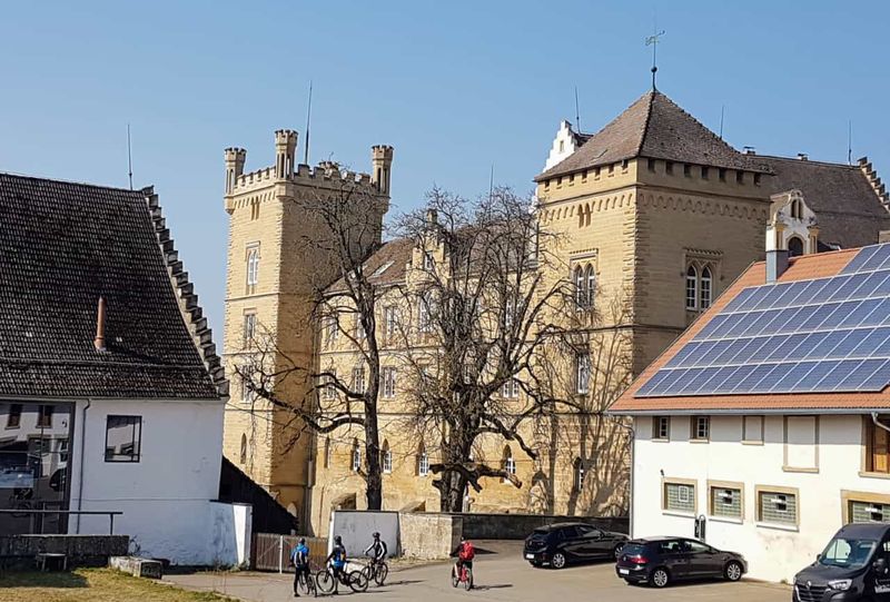 Treffunkt und Start der Tour war Ergenzingen. Vom Dorfbrunnen bei der Alten Apotheke ging es über Land und Feld zum ersten Highlight, das Schloss Weitenburg. Zu unserer großen Freude übernahm Schlossherr Max-Richard Freiherr von Raßler den Fotoapparat und „knipste“ ein schönes Gruppenfoto. Ein herzliches Dankeschön an dieser Stelle.