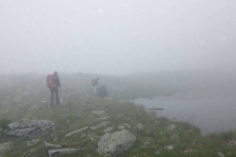 Auf der Bergstation stiegen wir bei dichtem Nebel aus und machten uns auf den Weg in Richtung Hütte. Aufgrund der nasskalten Wetterbedingungen und den vielen Grauabstufungen am Himmel verzichteten wir auf die Gipfelbesteigung der Madrisella 2.466 m. Immerhin konnten wir den geplanten Weg wandern, Wegpunkte setzen und viele interessante Pflanzengesellschaften aufnehmen und dokumentieren.