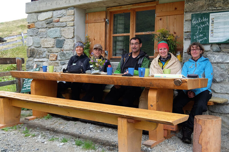 Mit Veronika, der Sennerin der Alpe, kamen wir ins Gespräch und hatten einen sehr netten und informativen Austausch. Für nächstes Jahr konnte Sabine gleich eine Besichtigung der Alpe vereinbaren. Dies wird mit einer Hüttentour zur Tübinger Hütte und einer Wanderung mit Förster Paul verbunden. Zu aller Freude wurden wir noch zu einer Käseverkostung eingeladen.