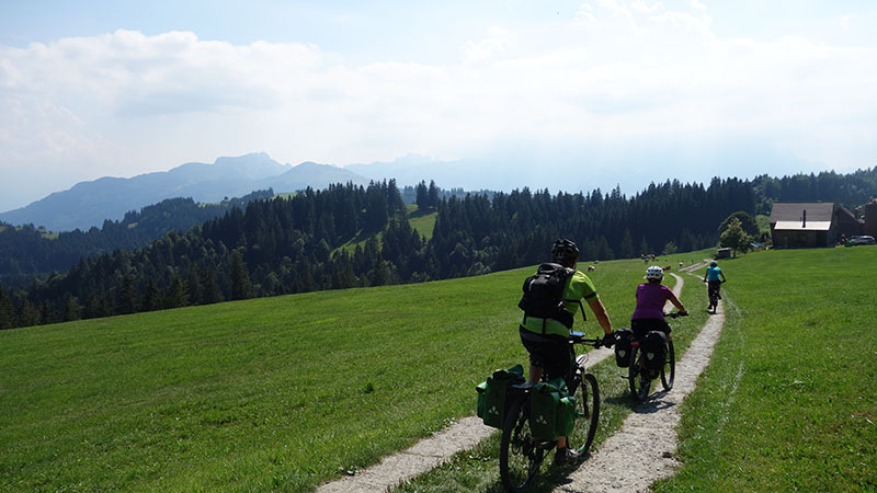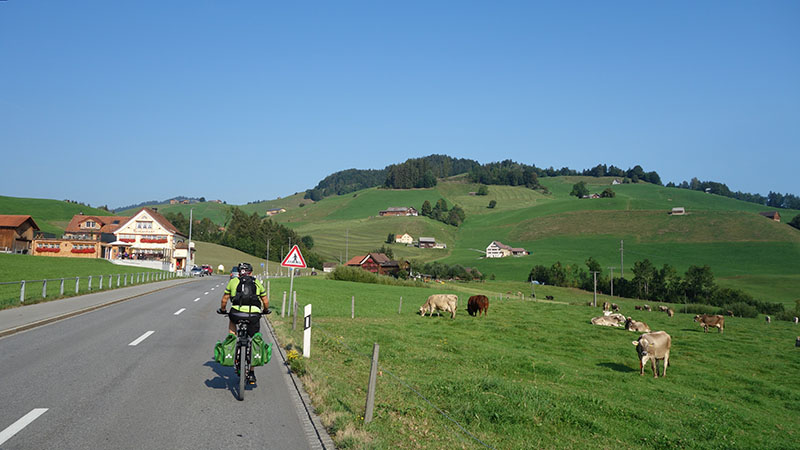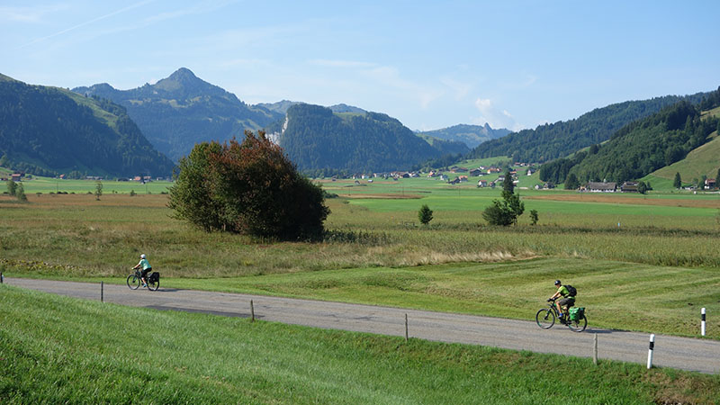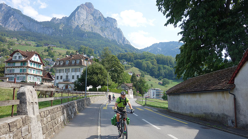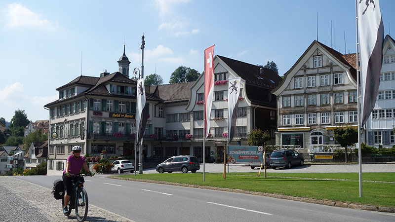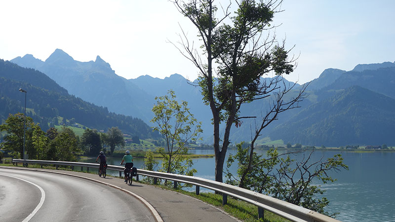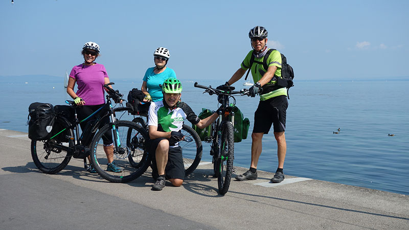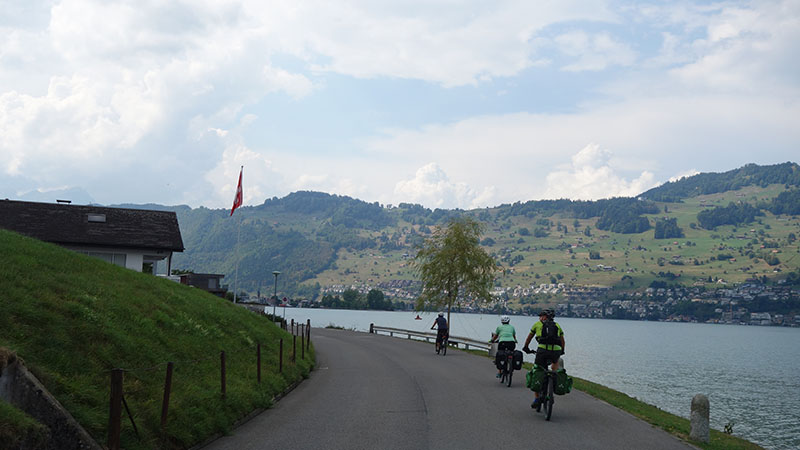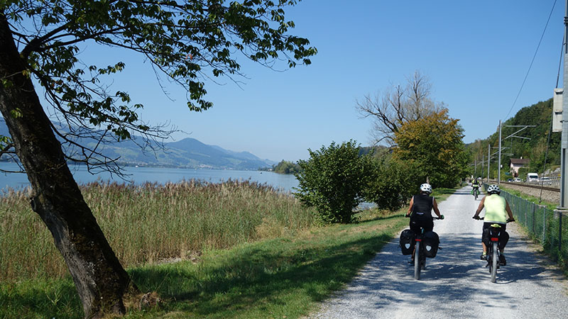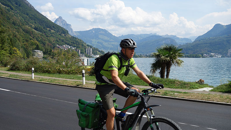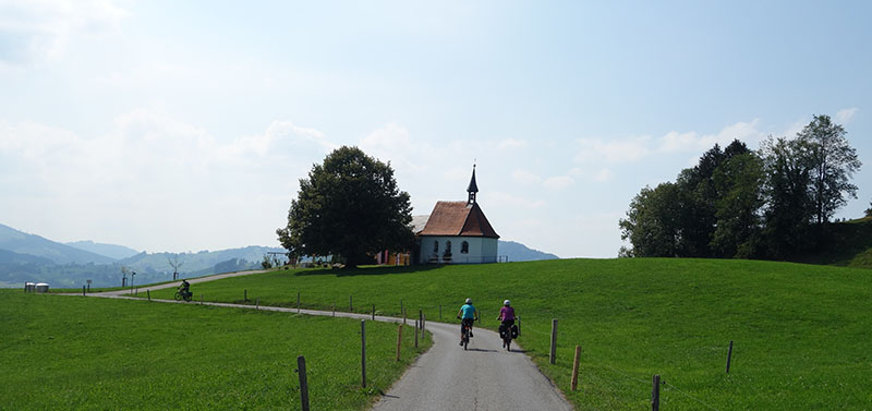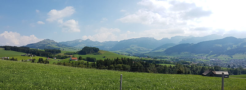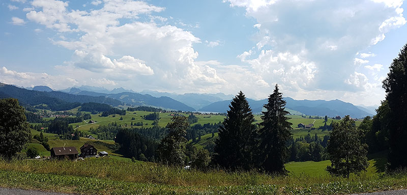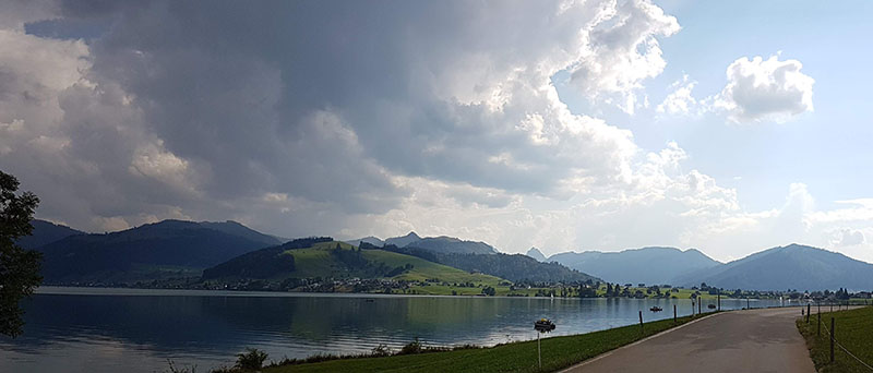 Vier unserer Donnerstags-Radler nutzten den schönen Sommer 2018 zu einer Velotour vom Bodensee bis zum Sarner-See. In vier Radel-Tagen ging es fast 300 km mit 3.100 Höhenmeter Auffahrten durch die typischen Schweizer Landschaften. Von Romanshorn den Bodenseeradweg entlang und ab Rorschach durch das hügelige Appenzellerland nach Appenzell. Durch das Toggenburger-Land nach Weesen am Walensee. Über Rapperswil am Zürichsee hinauf in die Ur-Schwyz zum Siehlsee und nach Einsiedeln. Vorbei an dem imposanten Großen Mythen durch Schwyz zum Vierwaldstädtersee. Nach der Fähr-Überfahrt dem Alpnachersee entlang nach Sarnen im Kanton Obwalden. Wegen dem einsetzendes Regenwetter wurde die Tour abgebrochen und es ging mit der Bahn zurück. Geplant ist eine Fortsetzung der Tour bis zum Genfersee. Zur Durchquerung der Schweiz fehlen noch 3 Tagesetappen über den Brünnigpass zum Breinzer- und Thuners-See sowie durch das Simmental und Saanental.
