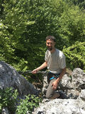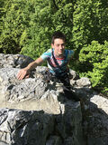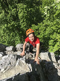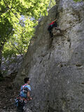 Nachmittags starteten wir dann an den „echten Fels“. Unser Ziel war der Naturparkfels, der mit vielen leichten bis mittelschweren Routen und einer guten Felsqualität auf uns wartete. Nachdem wir uns eine Weile im Toprope eingeklettert hatten, tasteten wir uns an unseren ersten Vorstiegsversuch heran. Ziel war das Einüben der morgens erlernten Technik.